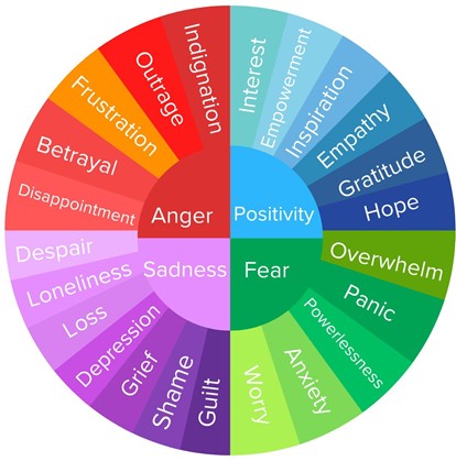 Climate Emotions Wheel von Anya Kamenetz, Panu Pikhala, Sarah Newman, Megan Slade, Julie Souza, Ryleigh Corrigan, Lizenz: CC BY-SA 4.0